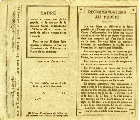 En 1914, le jeune André a neuf ans. Avec sa mère ils bénéficient de bons alimentaires et de bons d'essence pendant toute la période de la Première Guerre mondiale et quelques années après. Ils reçoivent également des cartes postales et des nouvelles de membres de la famille.
