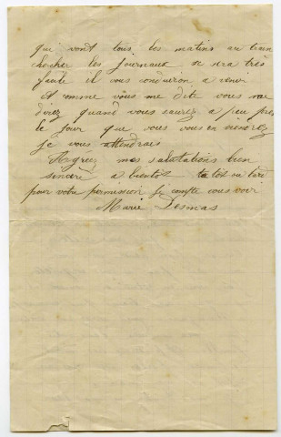 Le fonds contient une correspondance écrite depuis les tranchées par Donatien Desmas entre 1914 et 1916, des documents administratifs et médicaux ainsi que des photographies et cartes postales adressées à sa femme et à sa famille.