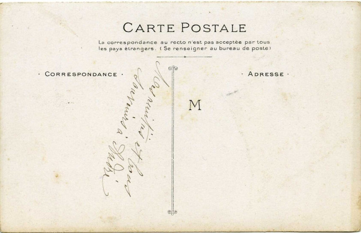 Carte postale intitulée "Mon coeur veut être peint sur les étendarts de la France, pour la rendre victorieuse de tous ses ennemis". Révélation de N.S.J.-C. à la bienheureuse Marguerite Marie, à Paray-le-Monial avec correspondance au dos.