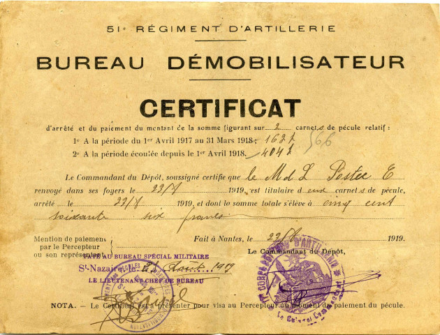 Le petit-fils d'Emile Postec a remis une copie numérique des objets et papiers personnels de son grand-père maternel aux Archives municipales à l'occasion de la Grande Collecte en 2014.
