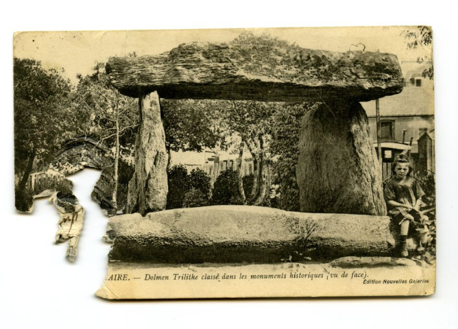 St-Nazaire - Dolmen Trilithe classé dans les monuments historiques (vu de face) / Nouvelles Galeries : 1 carte postale, noir et blanc avec correspondance au verso