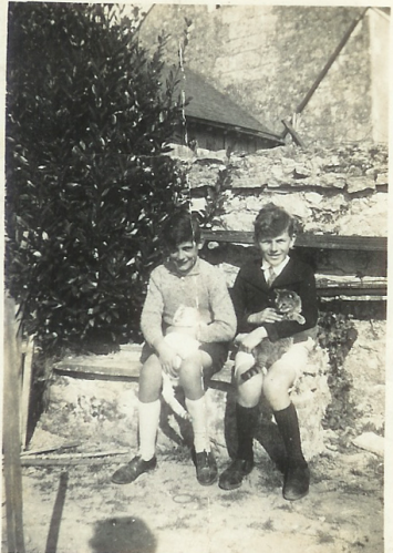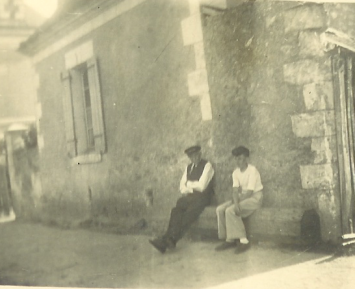 Yvon et son grand père à Cuon devant la maison des cousins - Photographie, collection personnelle