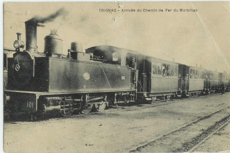 Le petit train du Morbihan ou « tortillard », arrivée à Trignac - Carte postale, collection personnelle