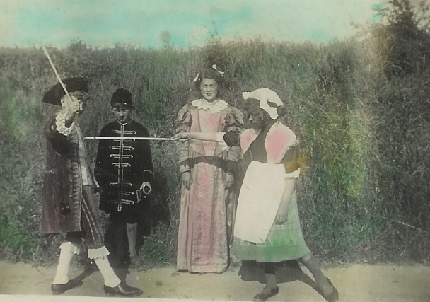 Une scène du Bourgeois Gentilhomme, jouée par Yvon Macé et ses camarades de classe, à Cuon - photographie, collection personnelle