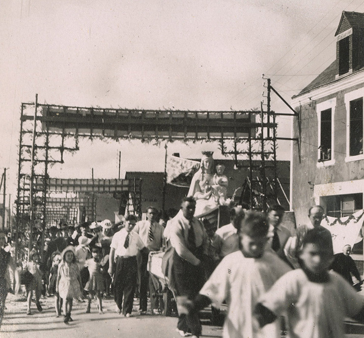 Procession de Notre-Dame-de-Boulogne le 27 juillet 1944 à Saint-Joachim - Collection particulière. Archives de Saint-Nazaire, 147NUM